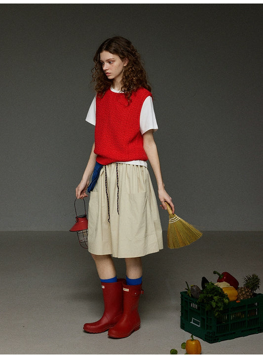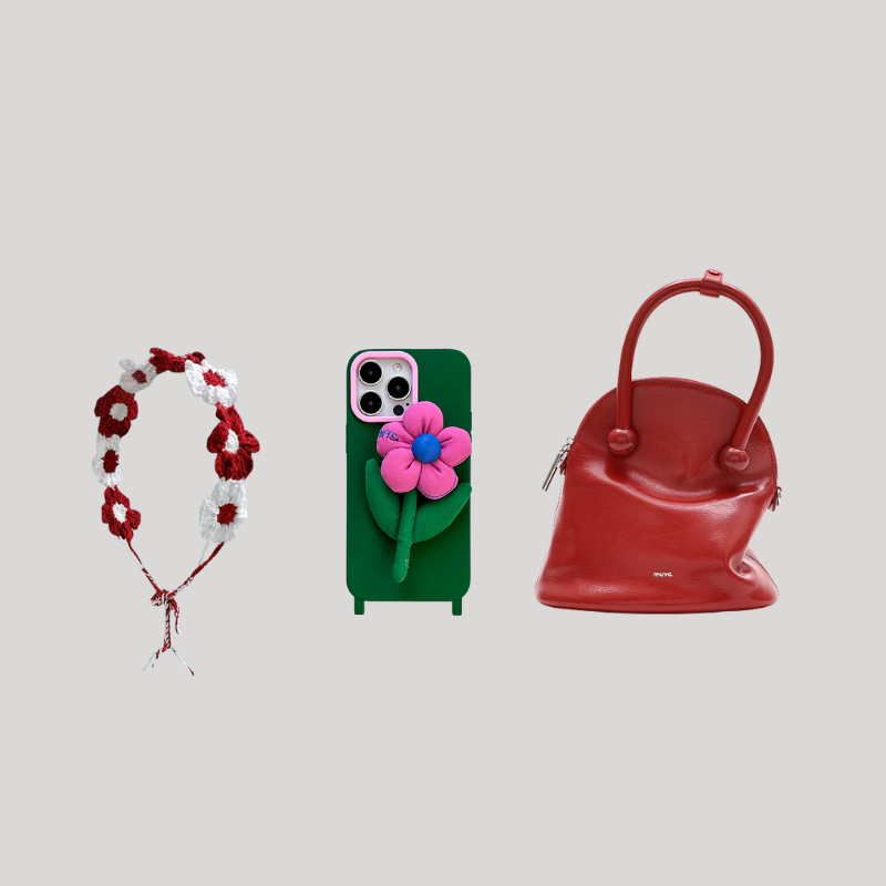 赤いバッグ、パステルのスカーフ、個性的なパターンのソックス。小さなアクセントが、全体のコーディネートを格上げ!