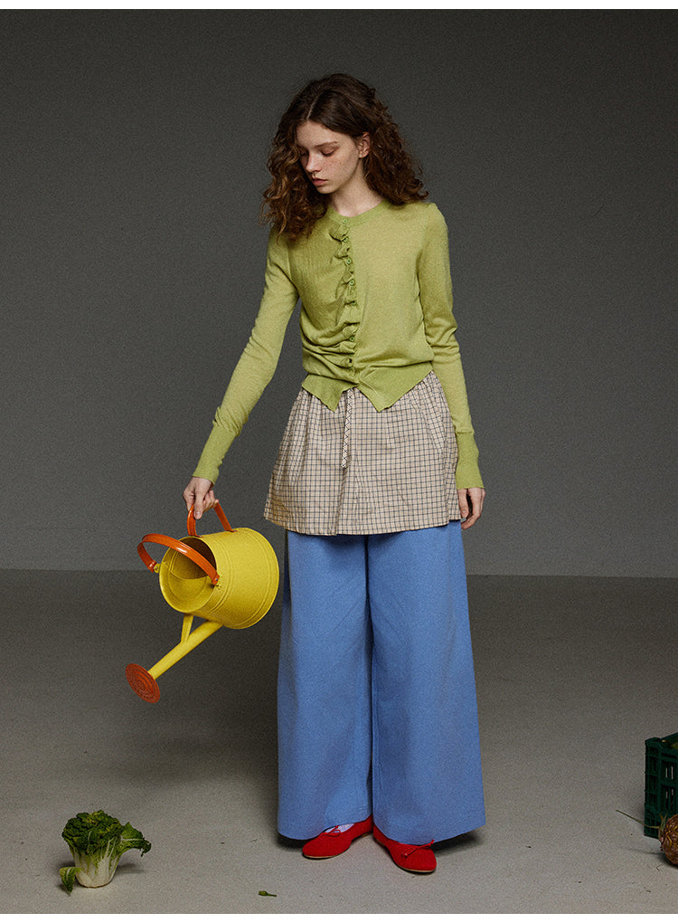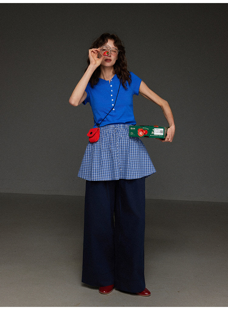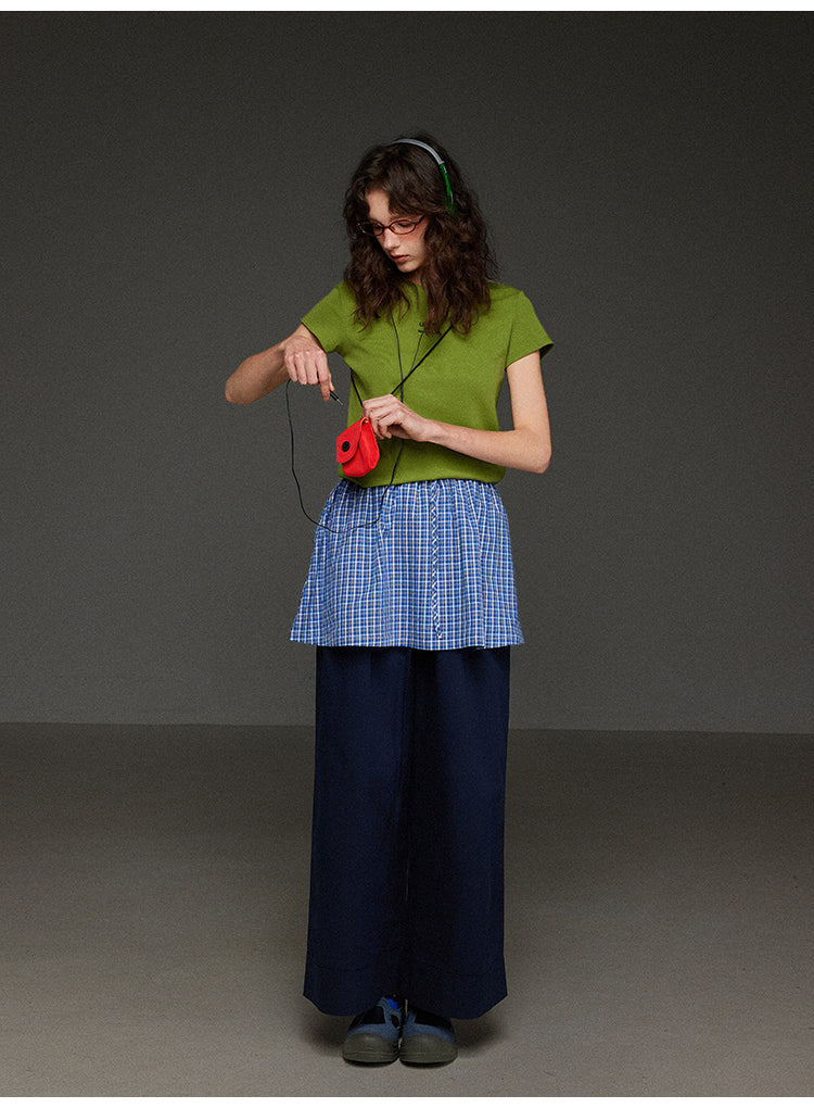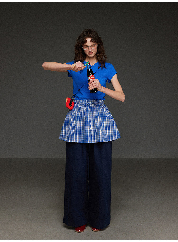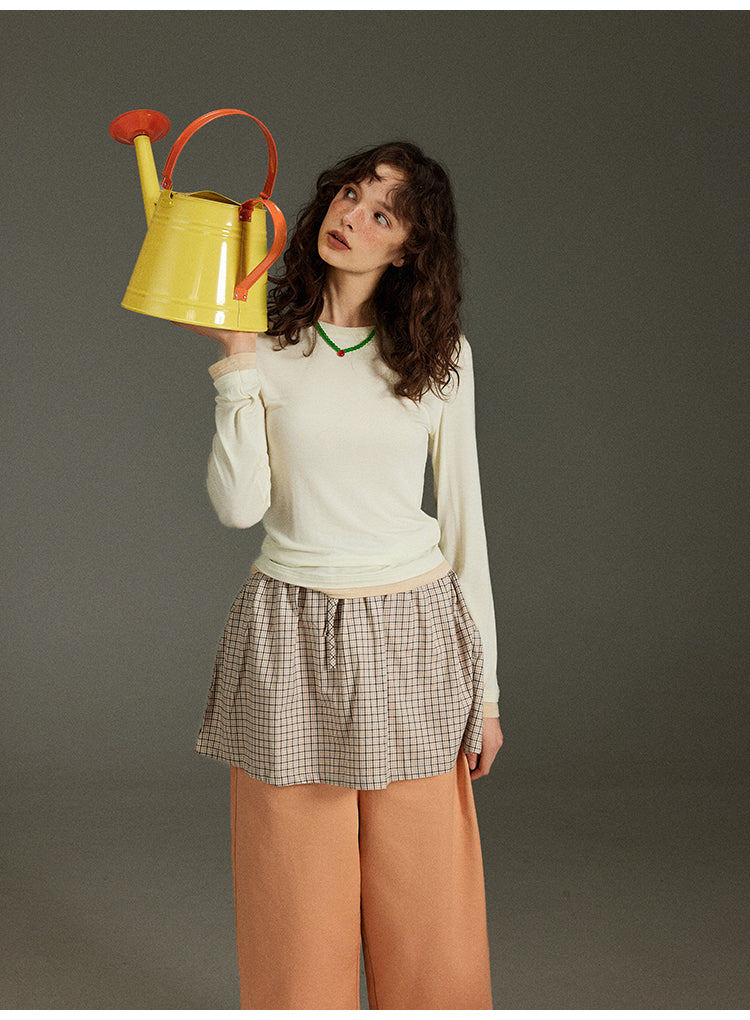 リラックス感と女性らしさを兼ね備えたこのスカートは、カジュアルからセミフォーマルまで幅広いコーディネートに対応します。柔らかなプリーツが動くたびに美しいシルエットを描き、チェック柄が上品な印象を演出します。