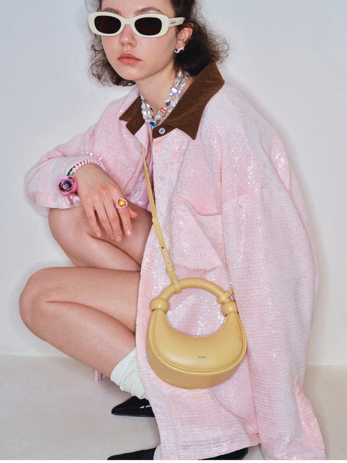 クラシカルな雰囲気と現代的なデザインを融合させたハンドバッグ。取り外し可能なハンドヘルドストラップ付きで、様々なスタイリングに対応可能です。