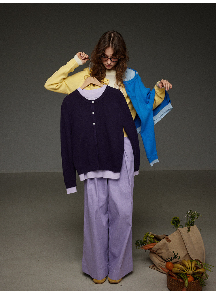 - 幅広いトップスと合わせやすいレトロパープルカラー