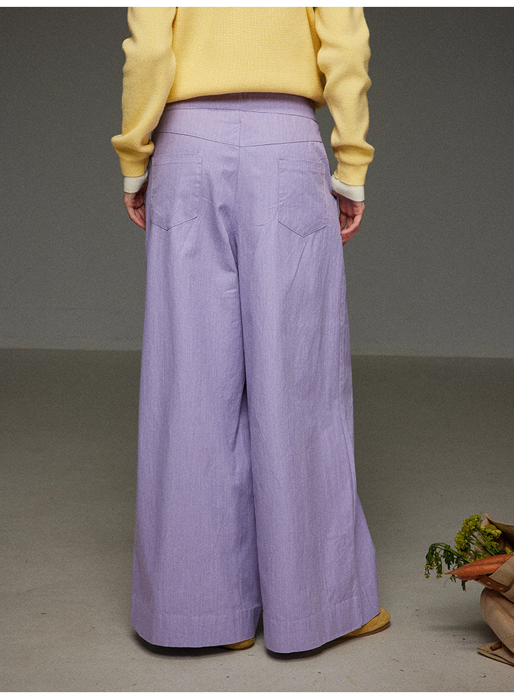 パープルカジュアルワイドパンツハイウエスト