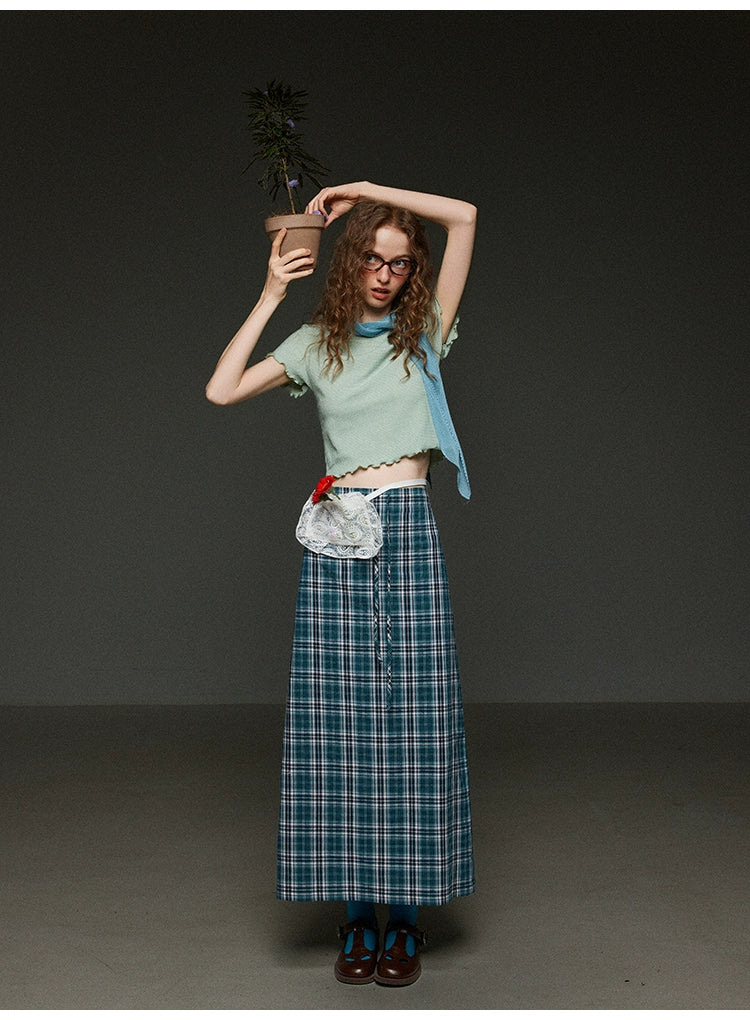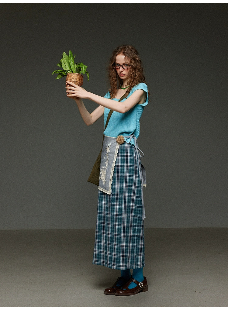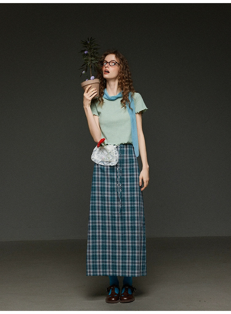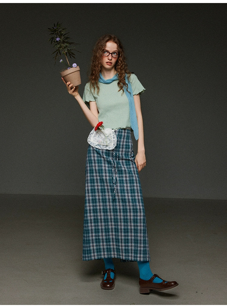 クラシカルなチェック柄と洗練されたストレートシルエットが魅力のマキシスカート。