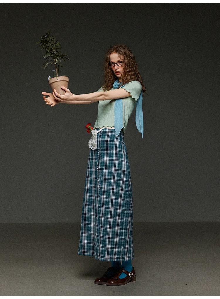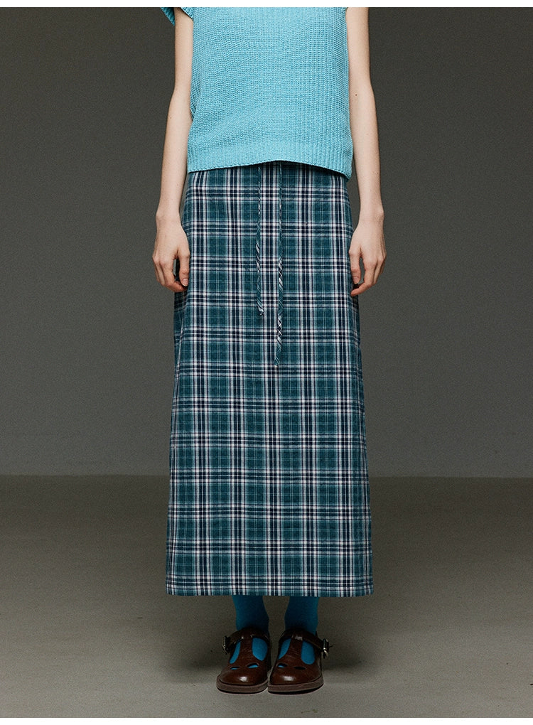 ヴィンテージチェックストレートタイアップ マキシスカートハイウェスト