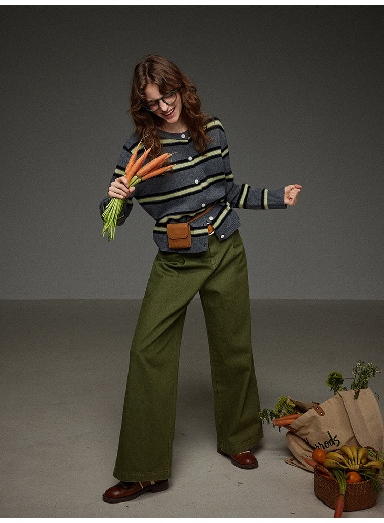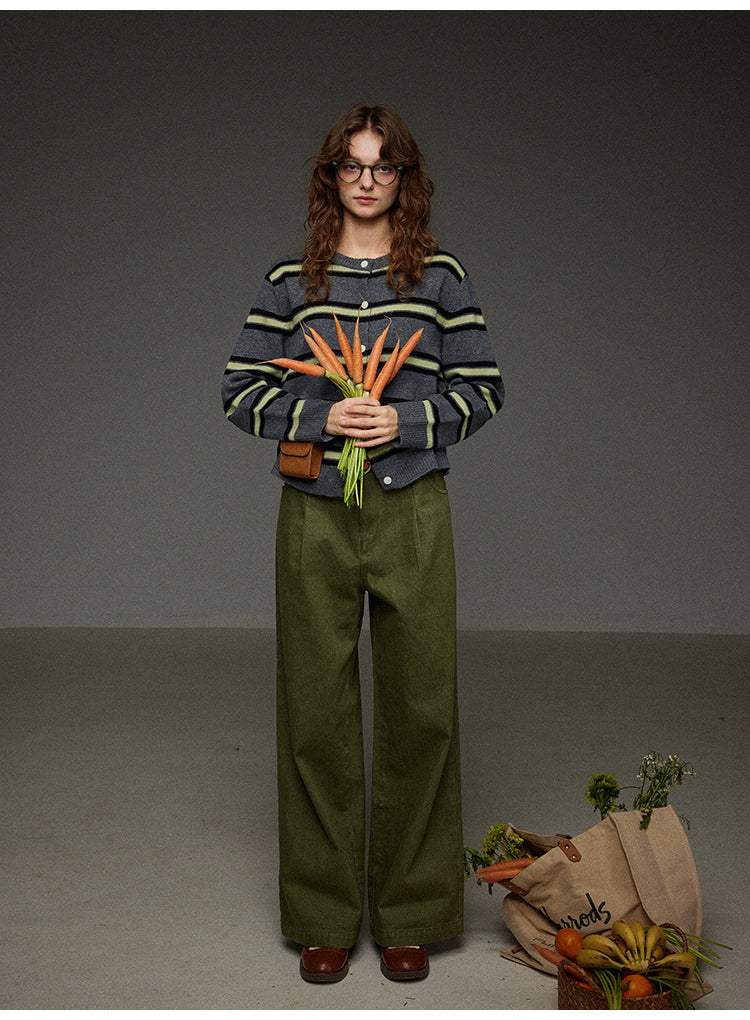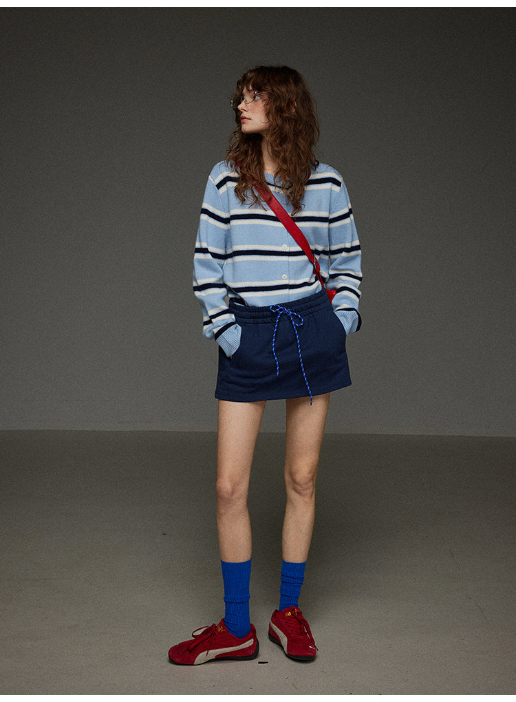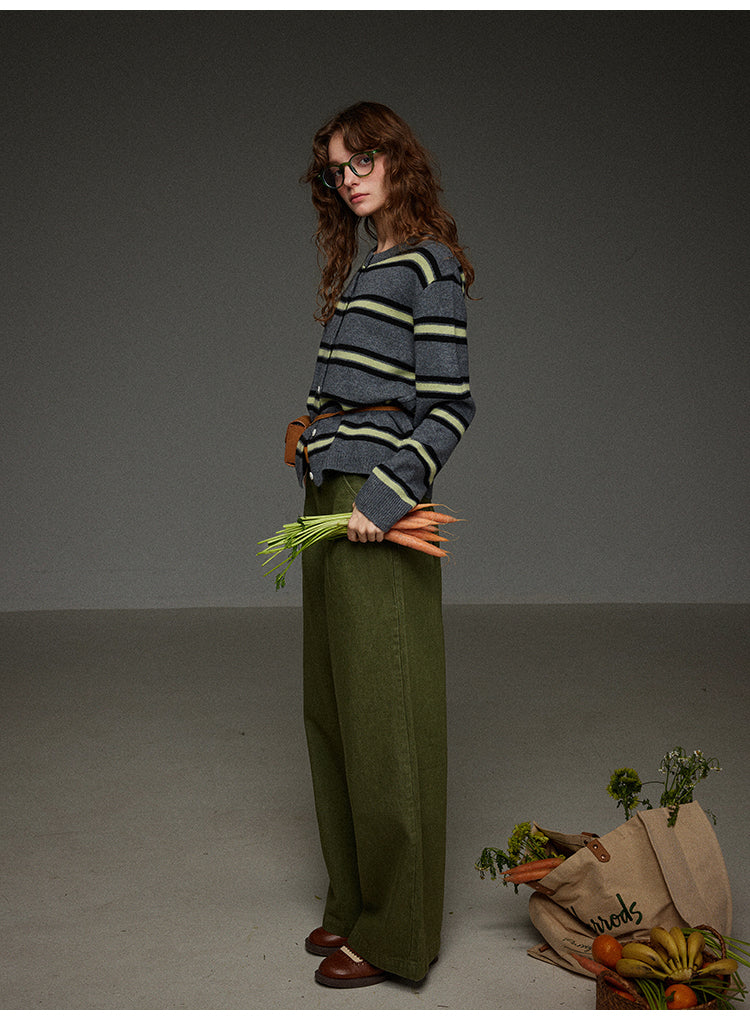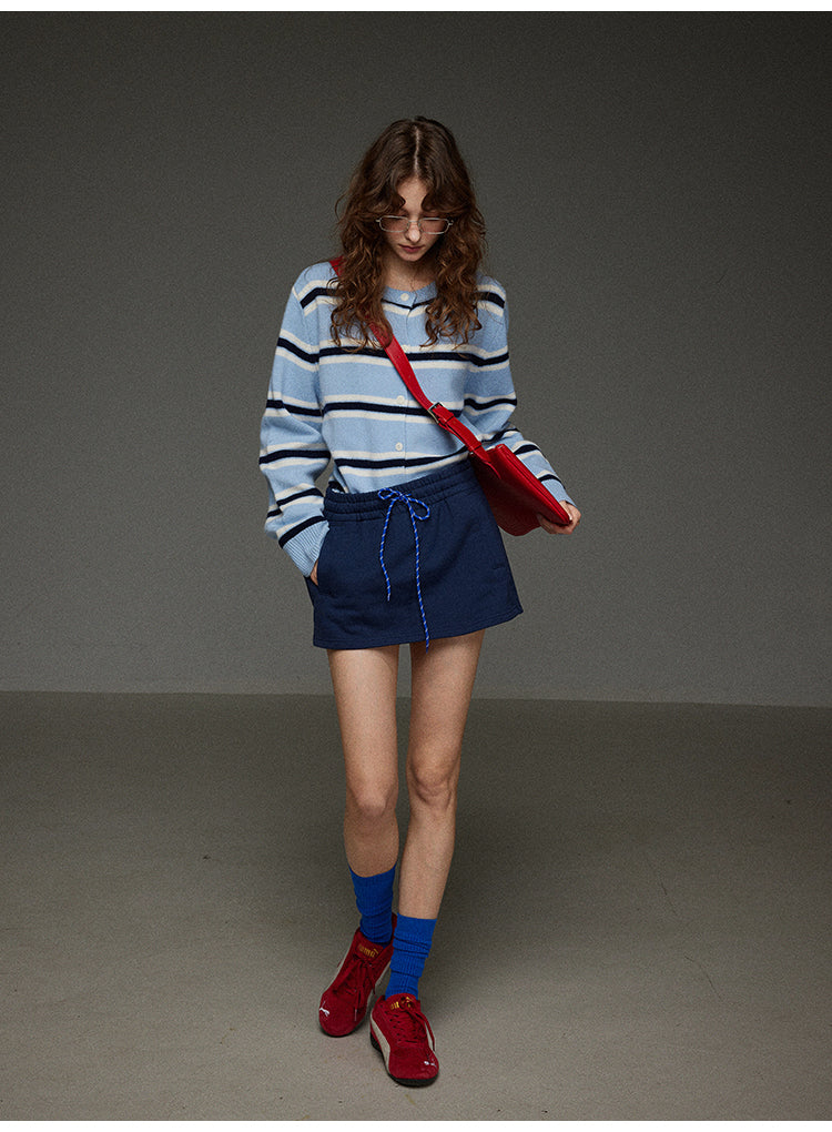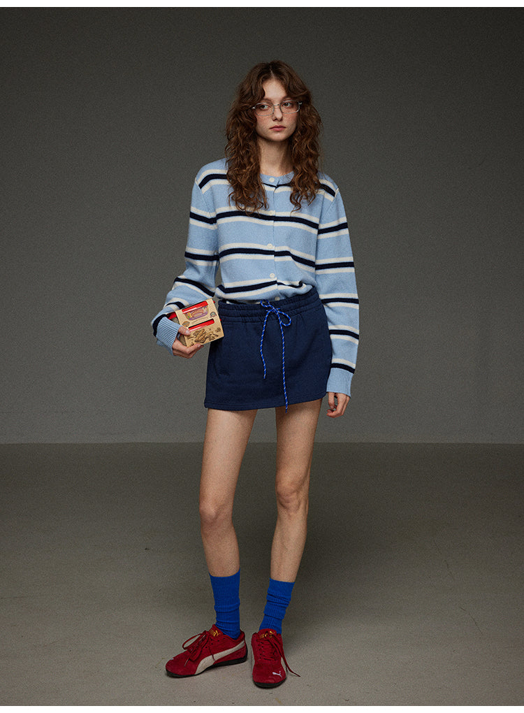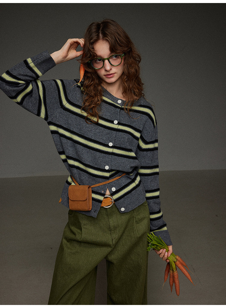 丸首ストライプニットカーディガン
