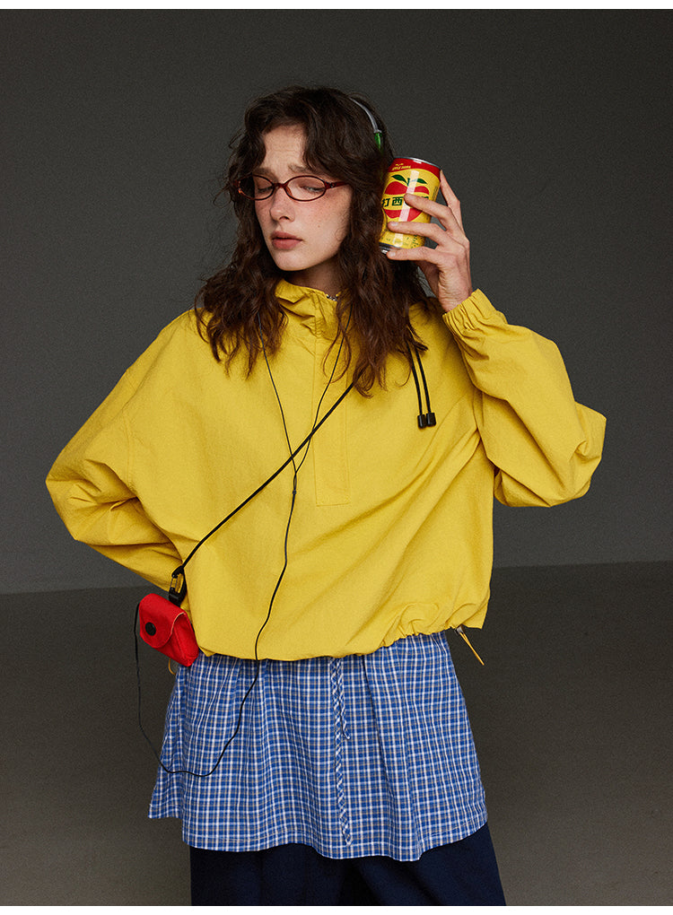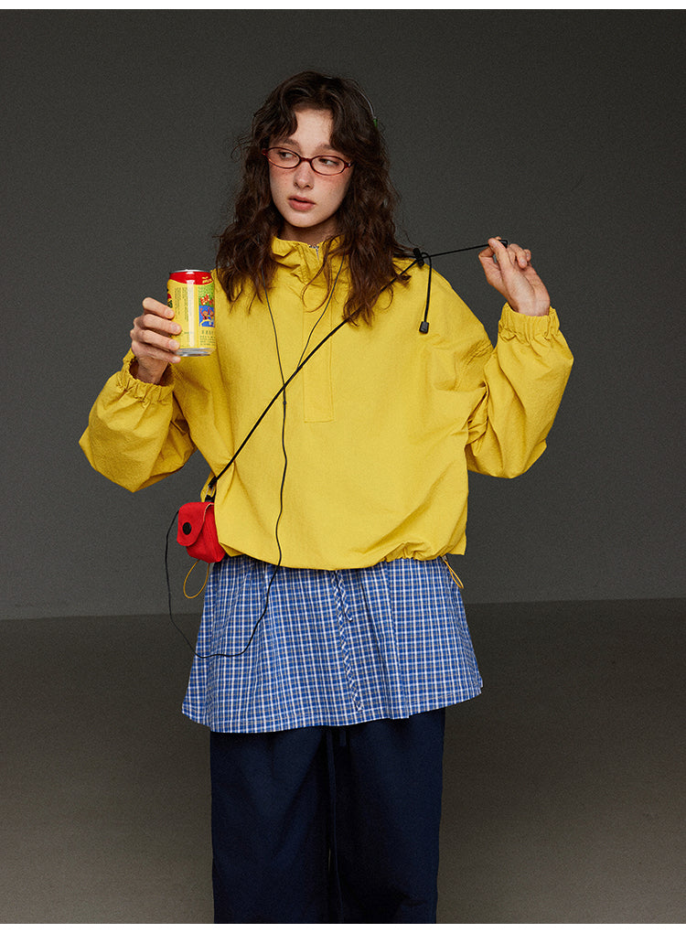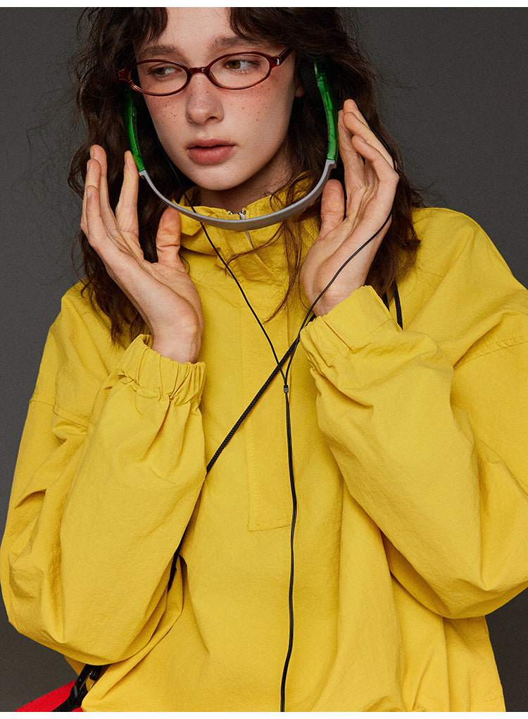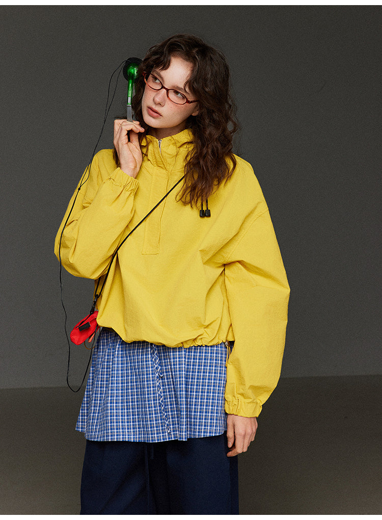 軽やかなハーフジップ連帽ジャケットレディース