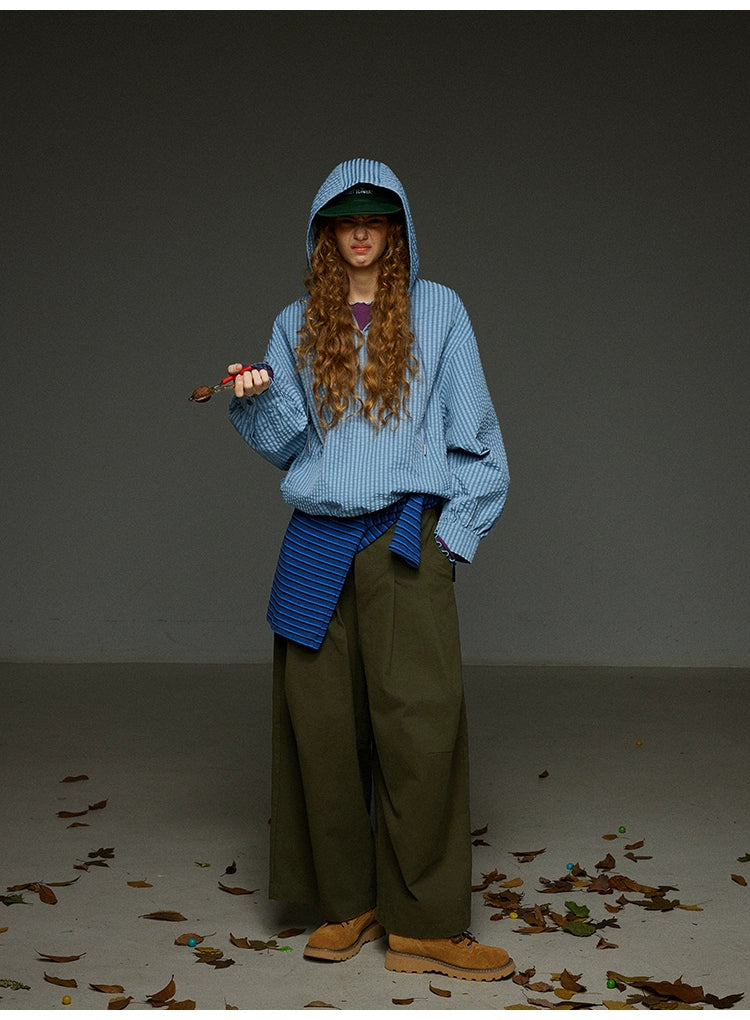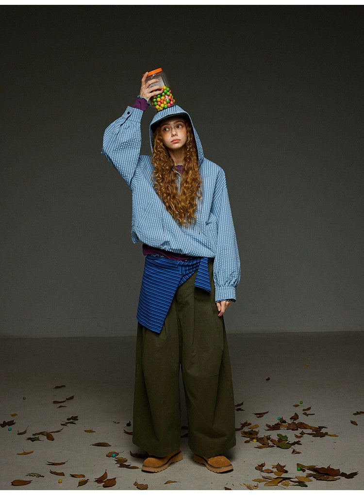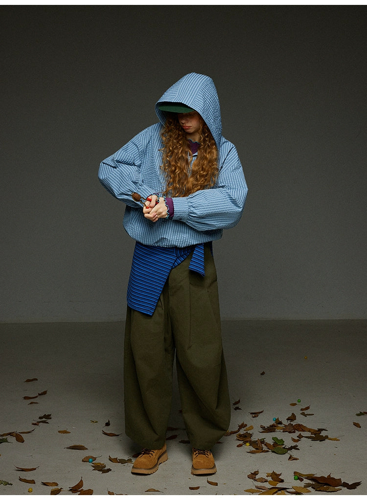 ハーフジップ&フード付きで、カジュアルにもフェミニンにも着回せる一着です。