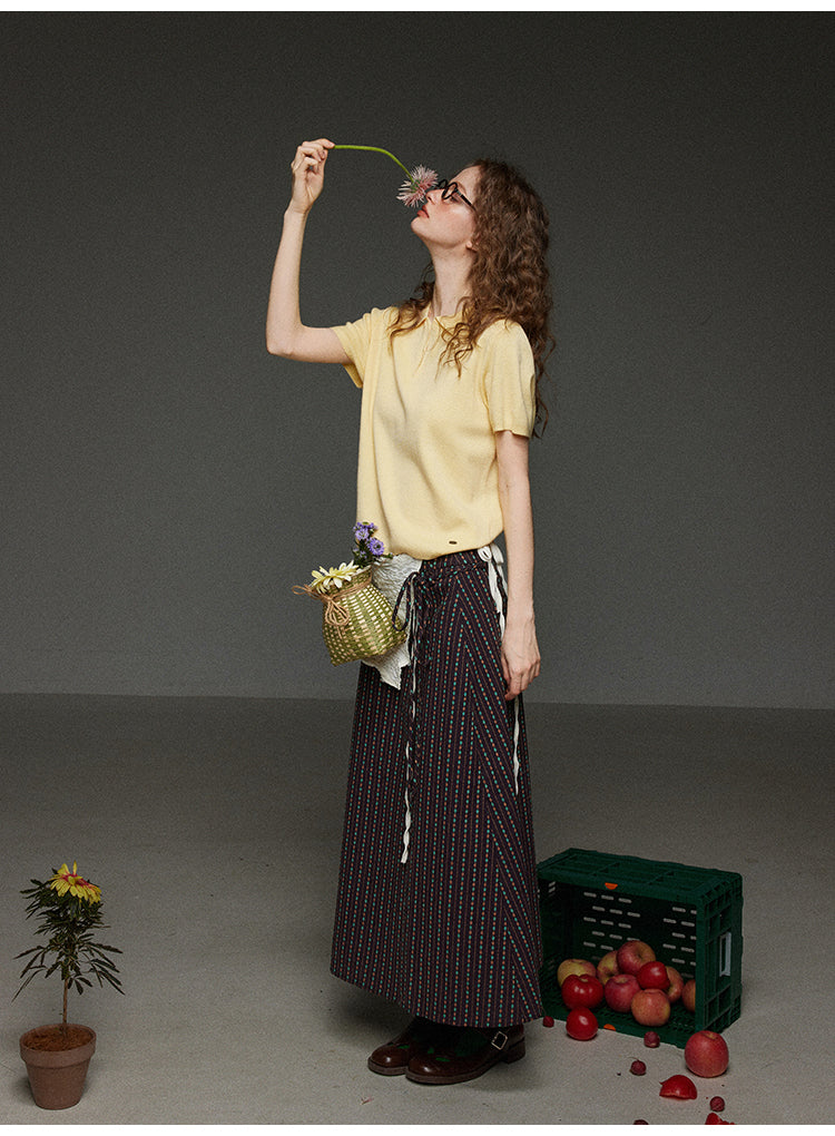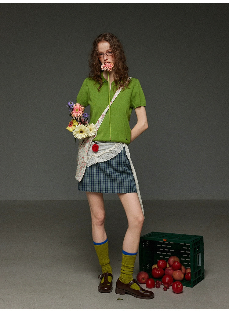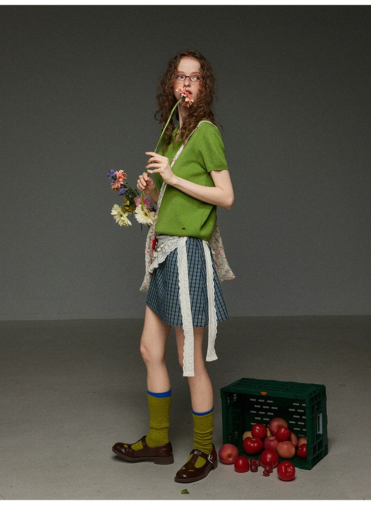 ・デニムやチェック柄スカートと合わせて、レトロなムードに