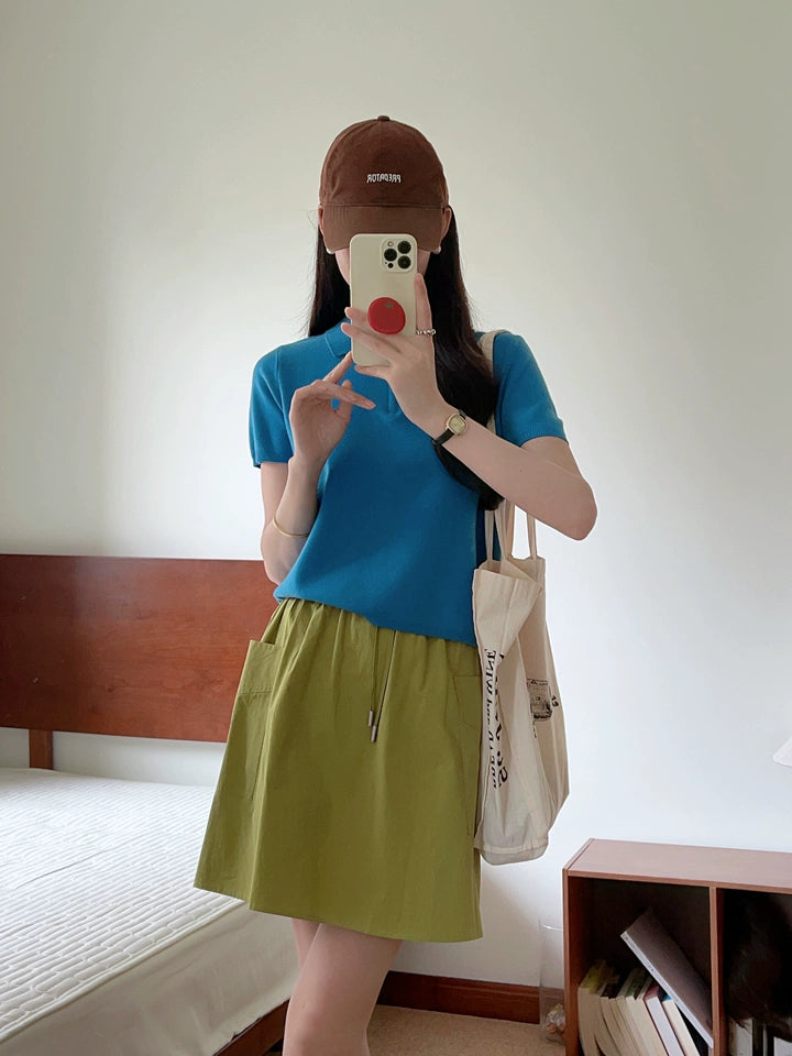 胸元を開けて抜け感を出したり、きっちり閉めてポロシャツ風に着こなしたりと、着こなし次第で印象を変えられるのもポイント。